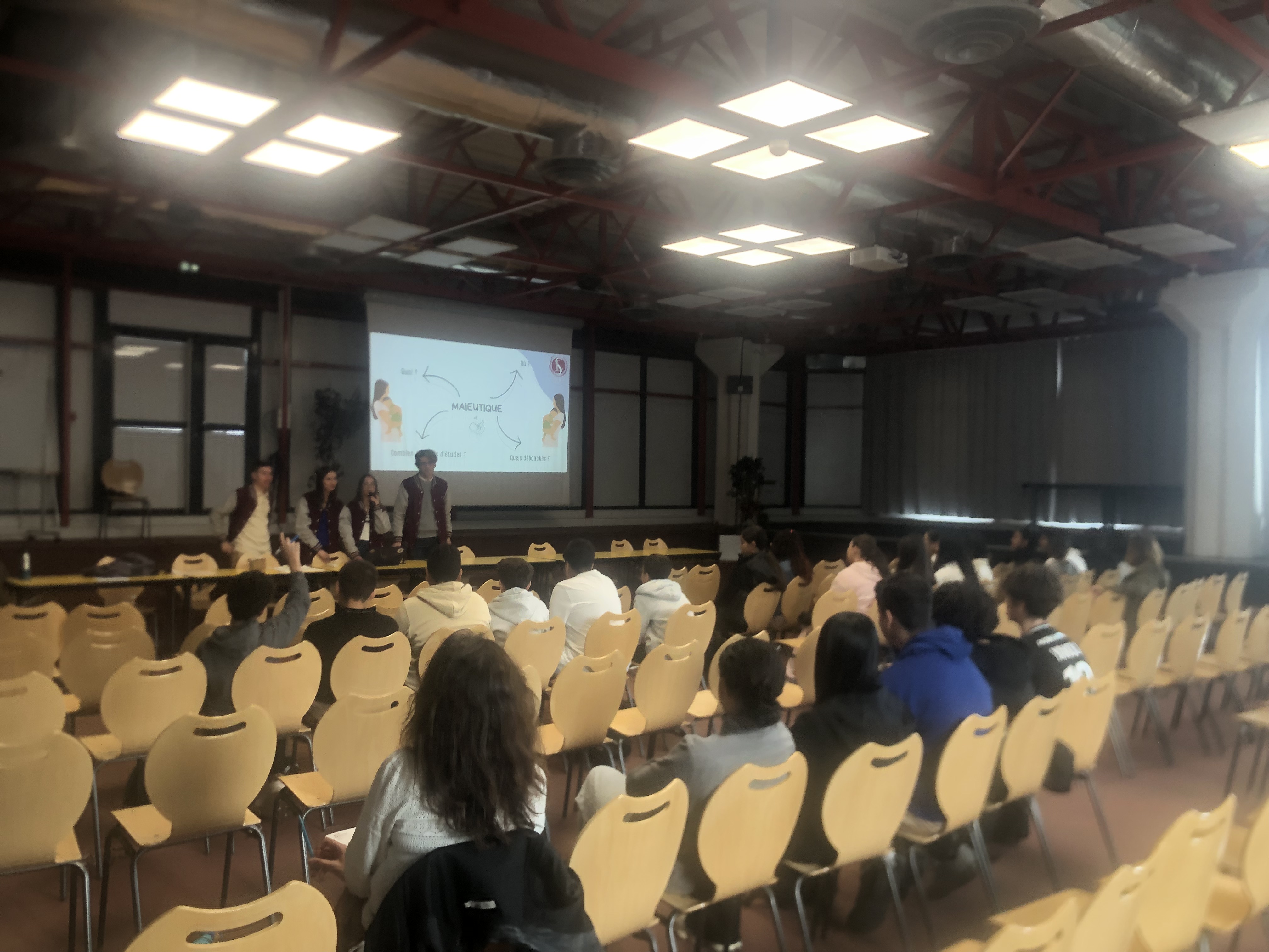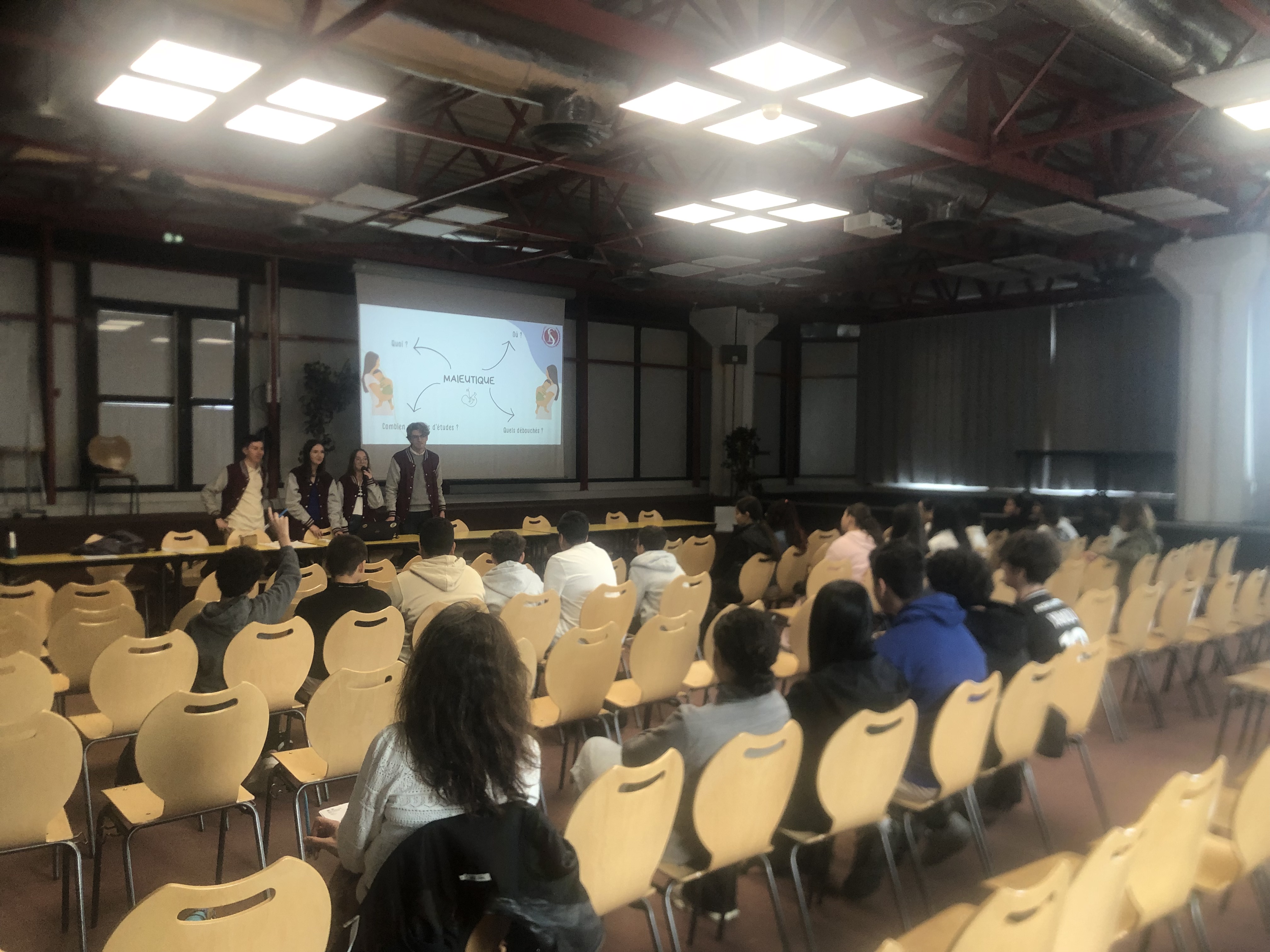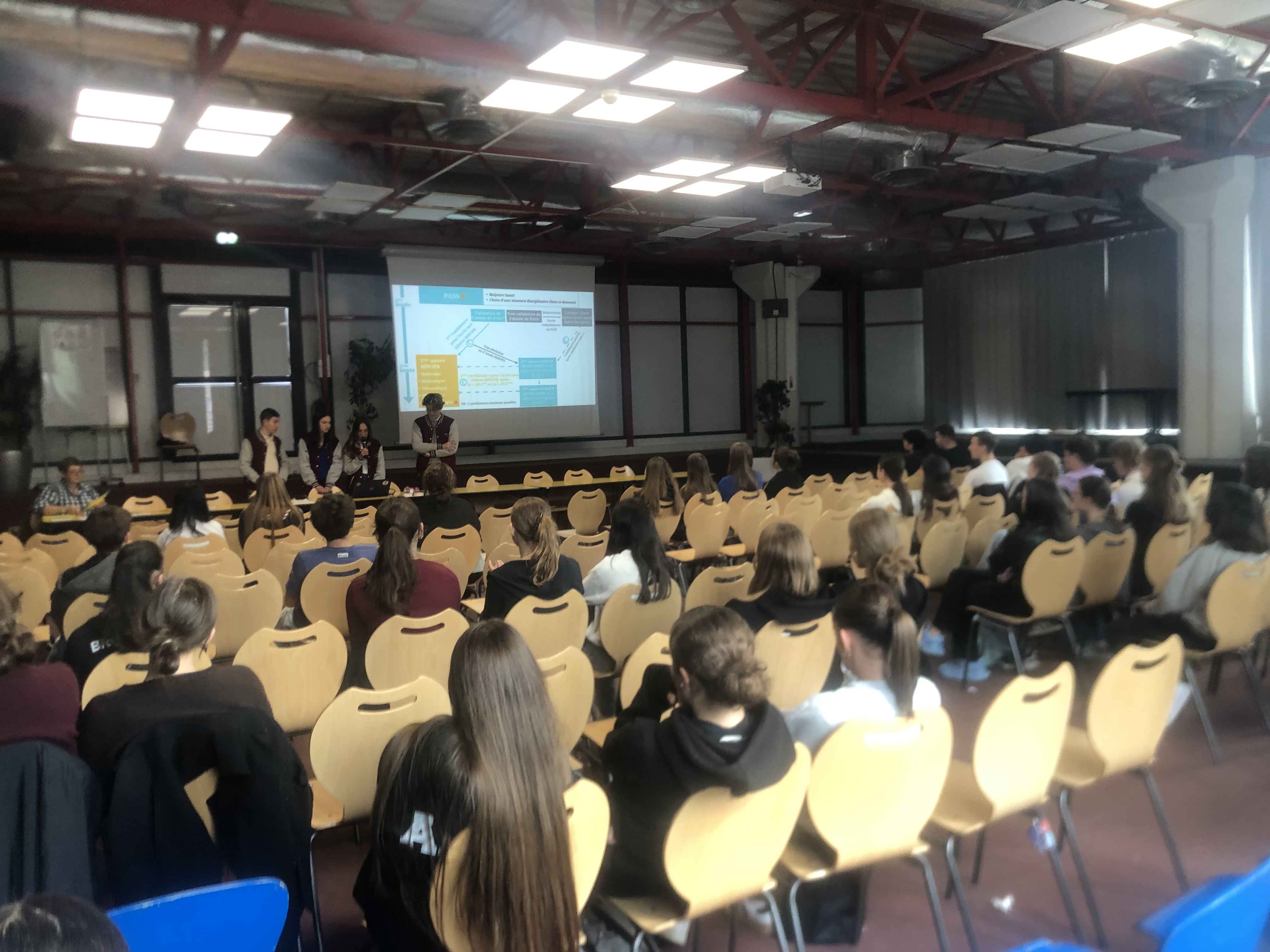 Le Mercredi 24 Septembre de 13h30 à 15h15 , 4 étudiants en médecine de l'association Tutorat Santé Lyon Sud sont venus présenter à 75 élèves (4°, 3°, Seconde, 1° et Terminales) membres de la Cordée Santé, les modalités de ces études exigeantes , dans en premier temps auprès du public de lycéens puis dans un second temps auprès des élèves des collèges Vallon et Aubrac . Un temps d'échanges précieux qui a permis de mieux appréhender la question des choix de spécialités , celles des subtiles différences entre les voies PASS et LAS et enfin la questions des divers métiers du monde médical et paramédical.