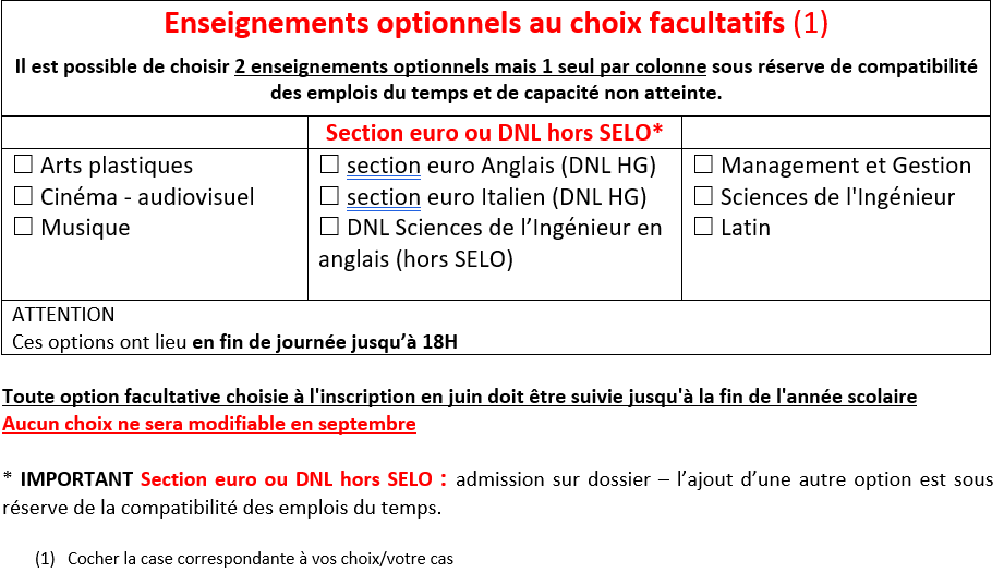 La classe de seconde : les options à l'entrée au lycée et les dispositif des Cordées de la Réussite