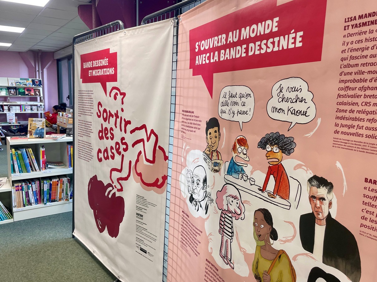 L'exposition Sortir des cases du Musée de l'immigration, présentée tout le mois de janvier, vient d'être décrochée. Merci à la médiathèque de Belleville-en-Beaujolais qui nous l'a prêtée ! Les élèves de 2nde 10 continuent le travail engagé avec Mr Lancelot en EMC sur la bande-dessinée pour comprendre la société.
