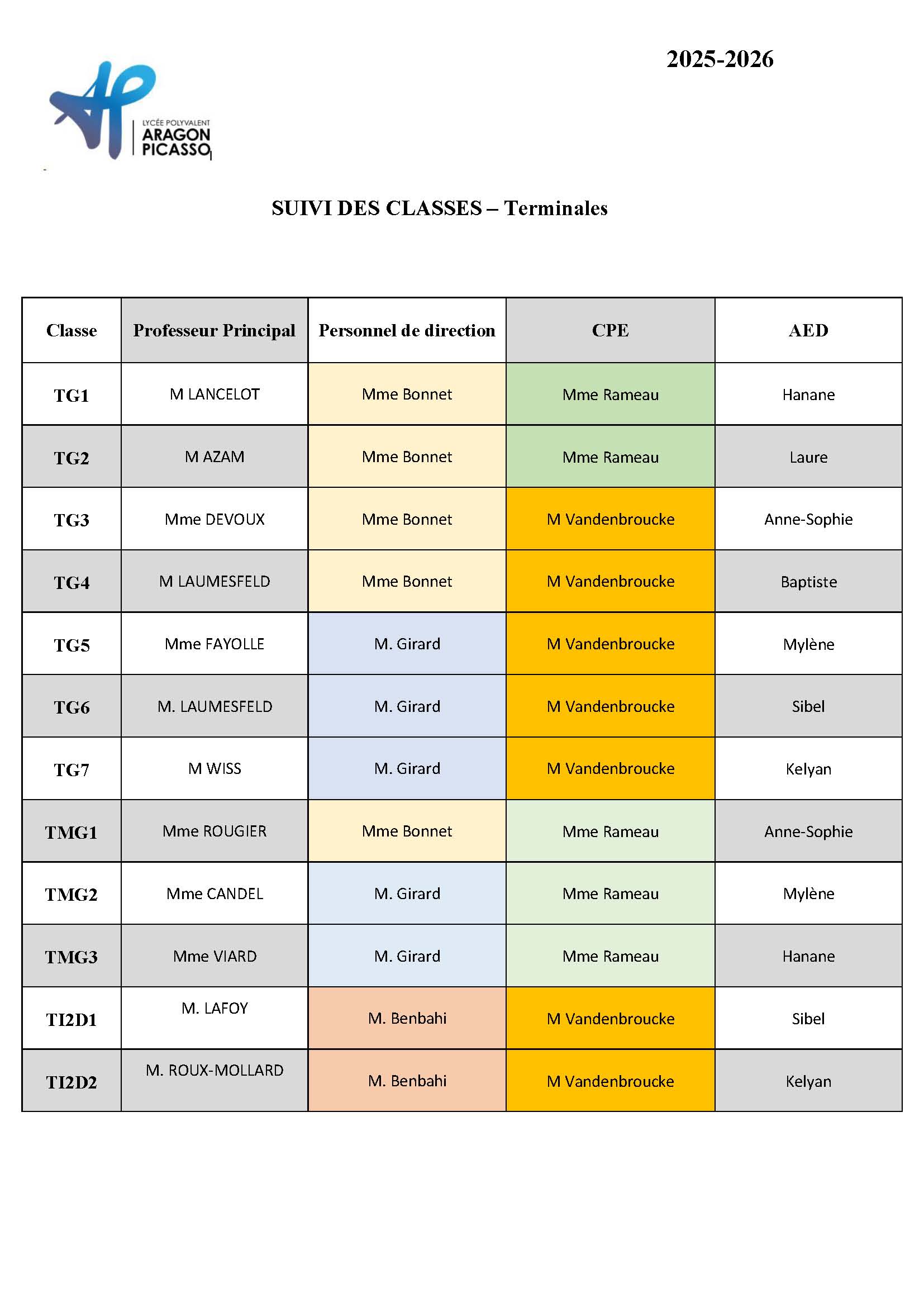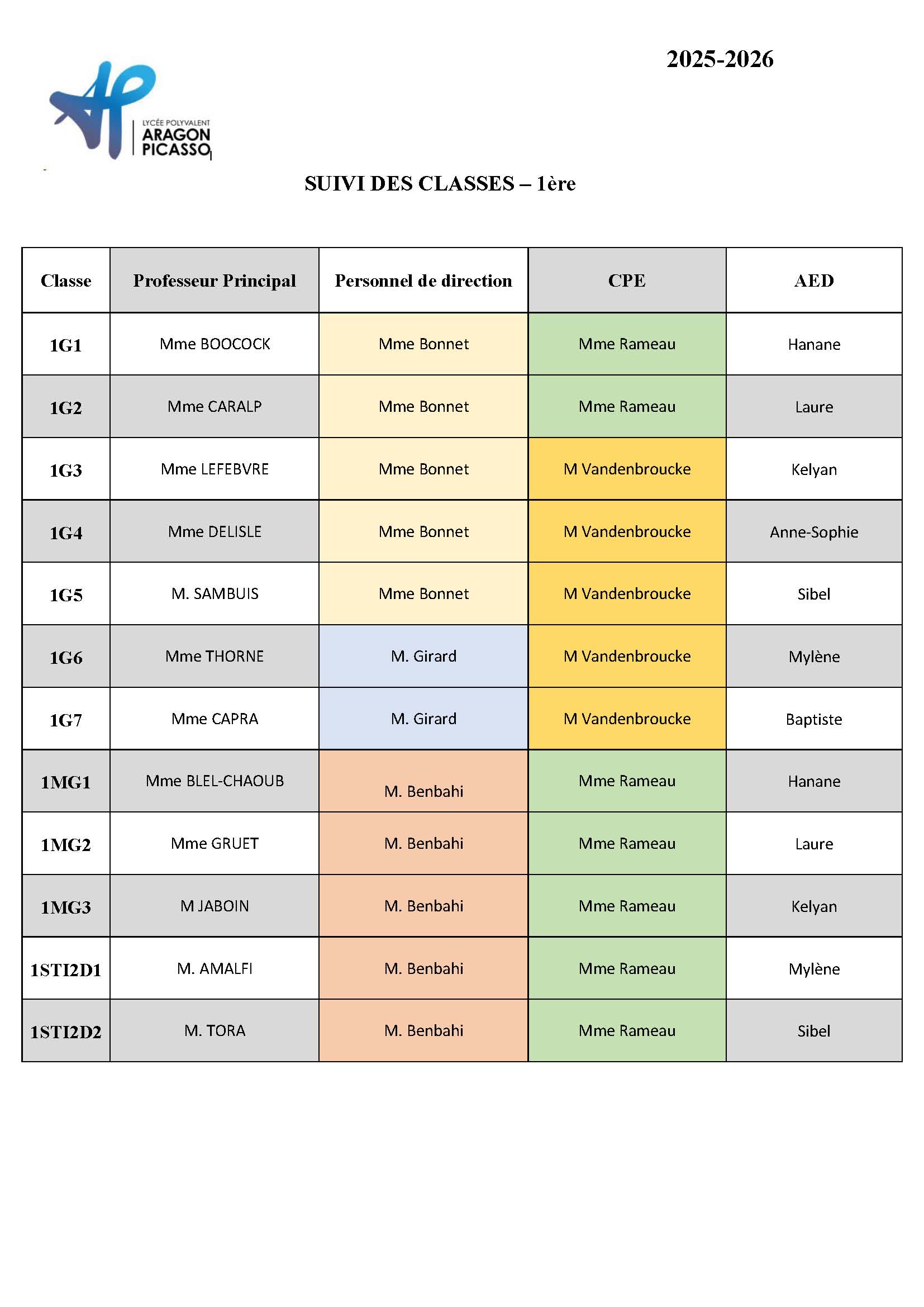 - Suivi des classes