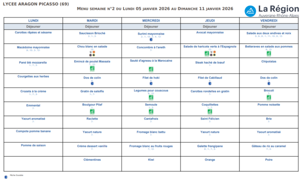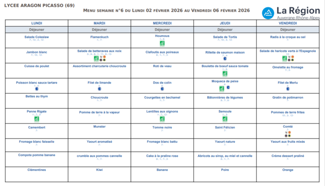 MENU DU LUNDI 02 MARS 2026 AU VENDREDI 06 MARS 2026