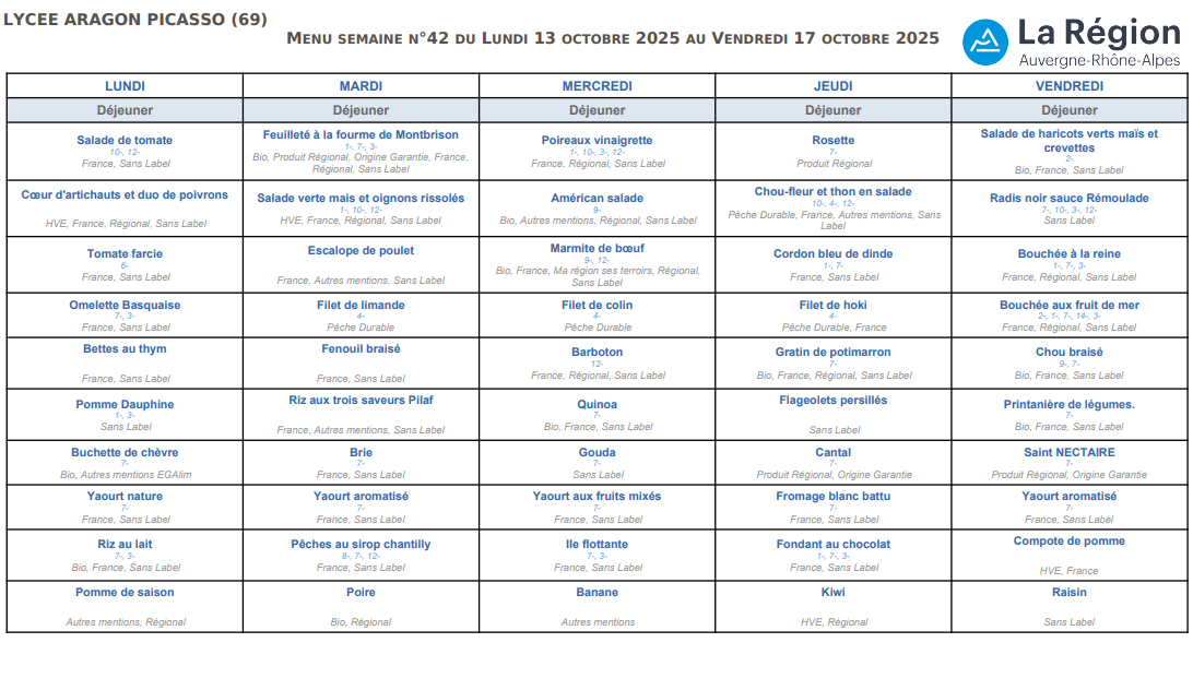 MENU DU LUNDI 13 OCTOBRE 2025 AU VENDREDI 17 OCTOBRE 2025
